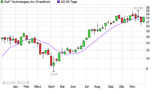 Mit dem Anstieg auf 24,50 EUR hat die SoFi Technologies-Aktie am 25.11.2025 die 50-Tage-Linie nach oben gekreuzt.