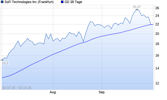Mit dem Rücksetzer auf 21,99 EUR hat die SoFi Technologies-Aktie am 01.10.2025 die 38-Tage-Linie nach unten gekreuzt.