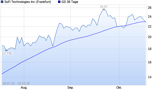 Mit dem Rücksetzer auf 22,93 EUR hat die SoFi Technologies-Aktie am 17.10.2025 die 38-Tage-Linie nach unten gekreuzt.