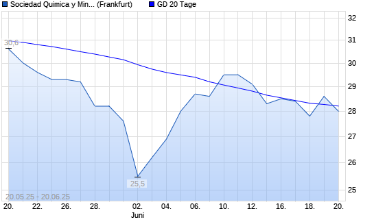 Mit dem Anstieg auf 28,60 EUR hat die Sociedad Quimica y Minera-Aktie am 19.06.2025 die 20-Tage-Linie nach oben gekreuzt.