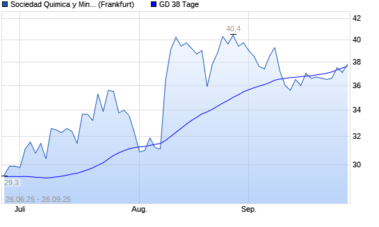 Mit dem Rücksetzer auf 37,10 EUR hat die Sociedad Quimica y Minera-Aktie am 25.09.2025 die 38-Tage-Linie nach unten gekreuzt.
