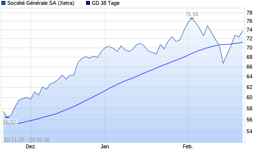 Mit dem Anstieg auf 72,34 EUR hat die Société Générale-Aktie am 19.02.2026 die 38-Tage-Linie nach oben gekreuzt.
