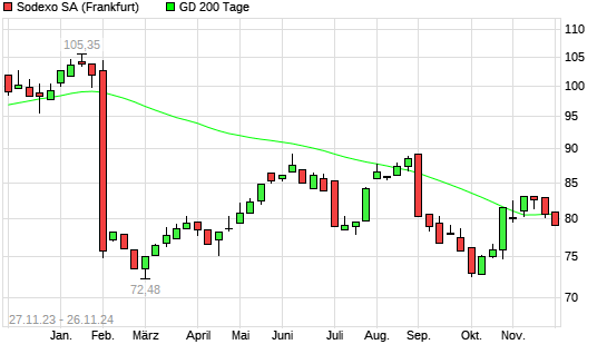 Mit dem Anstieg auf 80,85 EUR hat die Sodexo-Aktie am 25.11.2024 die 200-Tage-Linie nach oben gekreuzt.