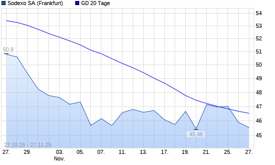 Mit dem Rücksetzer auf 45,92 EUR hat die Sodexo-Aktie am 26.11.2025 die 20-Tage-Linie nach unten gekreuzt.