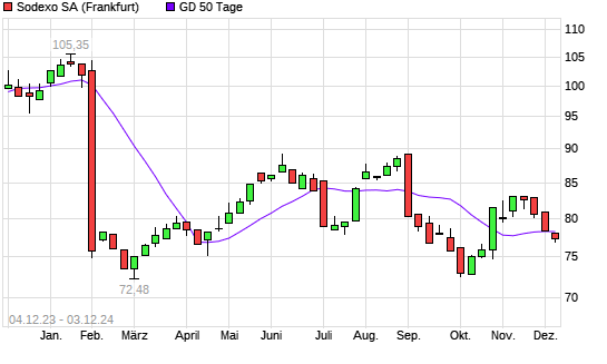 Mit dem Rücksetzer auf 76,90 EUR hat die Sodexo-Aktie am 02.12.2024 die 50-Tage-Linie nach unten gekreuzt.