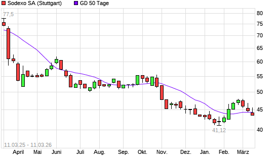 Mit dem Rücksetzer auf 43,84 EUR hat die Sodexo-Aktie am 10.03.2026 die 50-Tage-Linie nach unten gekreuzt.