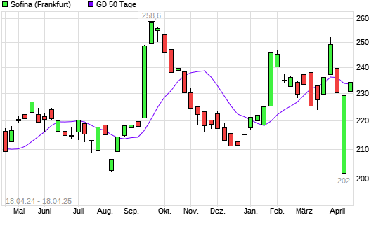 Mit dem Anstieg auf 234,40 EUR hat die Sofina-Aktie am 17.04.2025 die 50-Tage-Linie nach oben gekreuzt.