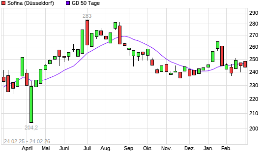 Mit dem Anstieg auf 248,80 EUR hat die Sofina-Aktie am 23.02.2026 die 50-Tage-Linie nach oben gekreuzt.