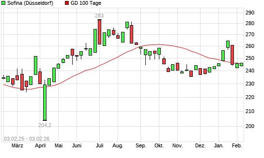 Mit dem Rücksetzer auf 243,80 EUR hat die Sofina-Aktie am 02.02.2026 die 100-Tage-Linie nach unten gekreuzt.