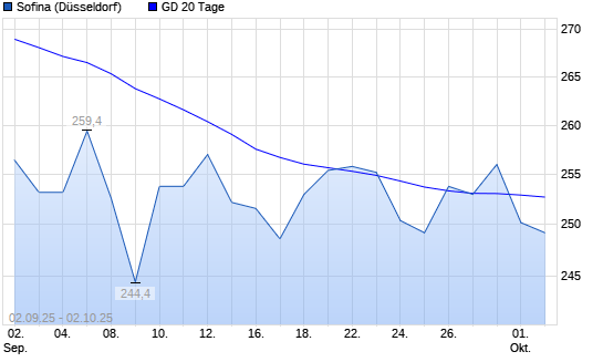 Mit dem Rücksetzer auf 250,80 EUR hat die Sofina-Aktie am 01.10.2025 die 20-Tage-Linie nach unten gekreuzt.