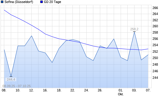 Mit dem Rücksetzer auf 249,60 EUR hat die Sofina-Aktie am 06.10.2025 die 20-Tage-Linie nach unten gekreuzt.