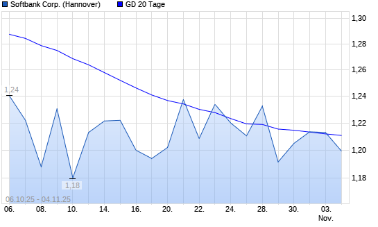 Mit dem Anstieg auf 1,21 EUR hat die Softbank Corp.-Aktie am 03.11.2025 die 20-Tage-Linie nach oben gekreuzt.Die Softbank Corp.-Aktie befindet sich seit dem 30.09.2025 im langfristigen Abwärtstrend ...weiterlesen