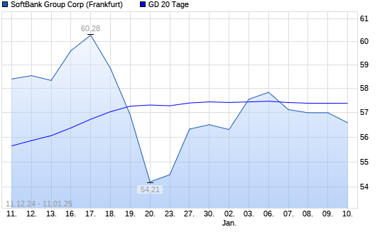 Mit dem Rücksetzer auf 56,58 EUR hat die Softbank Group-Aktie am 10.01.2025 die 20-Tage-Linie nach unten gekreuzt.