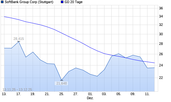 Mit dem Rücksetzer auf 94,20 EUR hat die Softbank Group-Aktie am 12.12.2025 die 20-Tage-Linie nach unten gekreuzt.