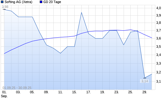 Mit dem Anstieg auf 3,60 EUR hat die Softing-Aktie am 29.09.2025 die 20-Tage-Linie nach oben gekreuzt.