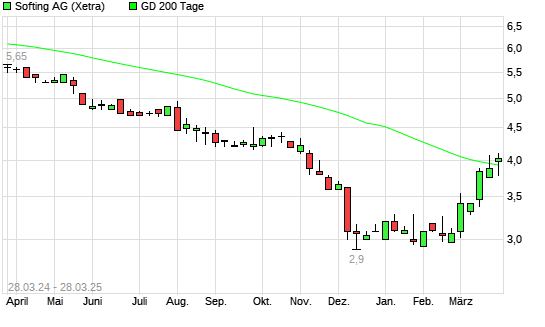 Mit dem Anstieg auf 3,84 EUR hat die Softing-Aktie am 27.03.2025 die 200-Tage-Linie nach oben gekreuzt.