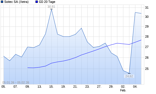 Mit dem Anstieg auf 29,81 EUR hat die Soitec-Aktie am 04.02.2026 die 20-Tage-Linie nach oben gekreuzt.