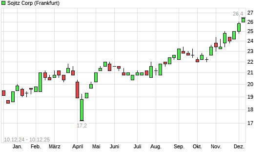 Mit dem Anstieg auf 26,40 EUR hat die Sojitz-Aktie (ISIN JP3663900003) am 09.12.2025 ein neues All-Time-High erreicht und damit den Kurs vom 03.05.2024 eingestellt.