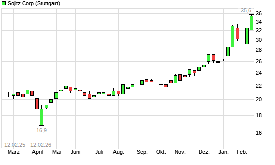 Mit dem Anstieg auf 34,60 EUR hat die Sojitz-Aktie (ISIN JP3663900003) am 11.02.2026 ein neues All-Time-High erreicht und damit den Kurs vom 10.02.2026 eingestellt.