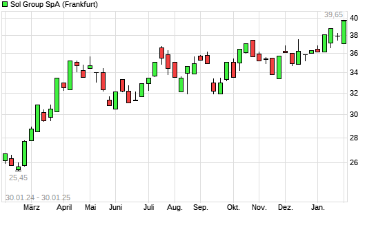 Mit dem Anstieg auf 37,80 EUR hat die Sol S.P.A.-Aktie (ISIN IT0001206769) am 29.01.2025 ein neues All-Time-High erreicht und damit den Kurs vom 28.01.2025 eingestellt.