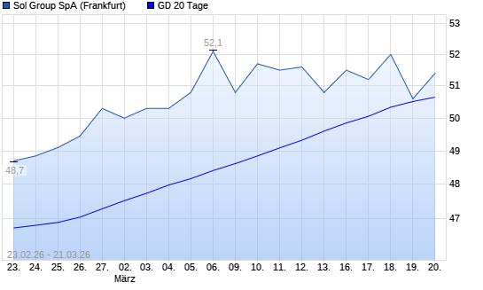 Mit dem Rücksetzer auf 50,70 EUR hat die Sol S.P.A.-Aktie am 20.03.2026 die 20-Tage-Linie nach unten gekreuzt.