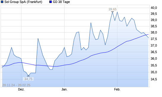 Mit dem Rücksetzer auf 36,65 EUR hat die Sol S.P.A.-Aktie am 19.02.2025 die 38-Tage-Linie nach unten gekreuzt.