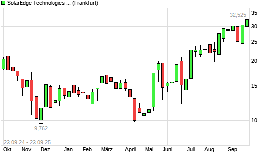 Mit dem Anstieg auf 32,50 EUR hat die SolarEdge-Aktie (ISIN US83417M1045) am 22.09.2025 ein neues 12-Monats-Hoch erreicht und damit den Kurs vom 19.09.2025 eingestellt.