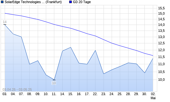 Mit dem Anstieg auf 11,71 EUR hat die SolarEdge-Aktie am 02.05.2025 die 20-Tage-Linie nach oben gekreuzt.