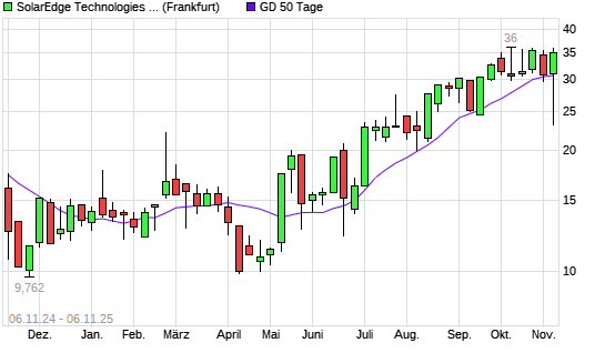 Mit dem Anstieg auf 34,00 EUR hat die SolarEdge-Aktie am 05.11.2025 die 50-Tage-Linie nach oben gekreuzt.