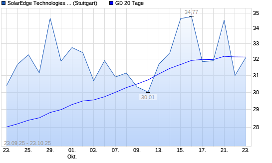 Mit dem Rücksetzer auf 31,22 EUR hat die SolarEdge-Aktie am 22.10.2025 die 20-Tage-Linie nach unten gekreuzt.
