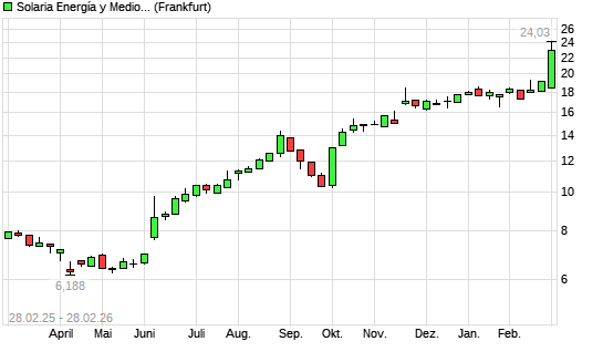 Mit dem Anstieg auf 22,95 EUR hat die Solaria Energia-Aktie (ISIN ES0165386014) am 27.02.2026 ein neues 3-Jahres-Hoch erreicht und damit den Kurs vom 26.02.2026 eingestellt.
