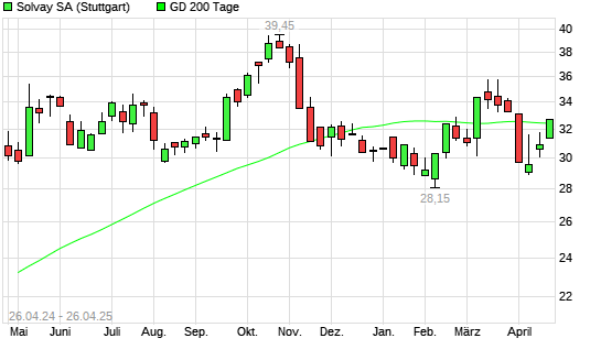Mit dem Anstieg auf 32,52 EUR hat die Solvay-Aktie am 25.04.2025 die 200-Tage-Linie nach oben gekreuzt.