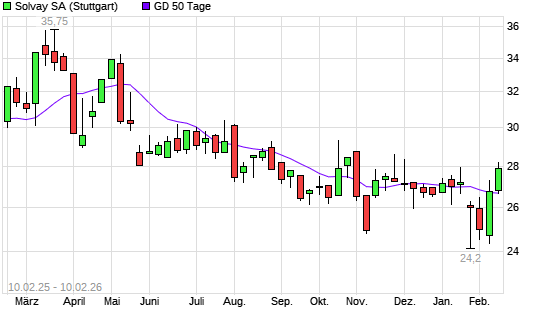 Mit dem Rücksetzer auf 26,62 EUR hat die Solvay-Aktie am 09.02.2026 die 50-Tage-Linie nach unten gekreuzt.
