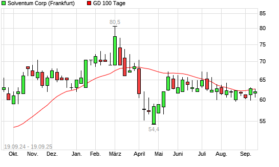 Mit dem Anstieg auf 63,20 EUR hat die Solventum Corp-Aktie am 18.09.2025 die 100-Tage-Linie nach oben gekreuzt.