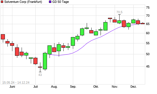 Mit dem Rücksetzer auf 65,50 EUR hat die Solventum Corp-Aktie am 13.12.2024 die 50-Tage-Linie nach unten gekreuzt.