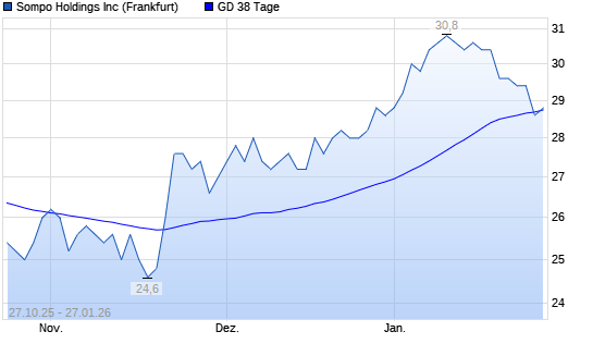 Mit dem Rücksetzer auf 28,60 EUR hat die Sompo Holdings-Aktie am 26.01.2026 die 38-Tage-Linie nach unten gekreuzt.