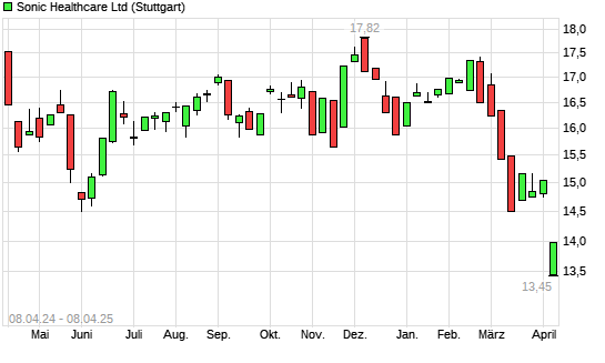 Mit dem Rücksetzer auf 13,23 EUR hat die Sonic Healthcare-Aktie (ISIN AU000000SHL7) am 07.04.2025 ein neues 3-Jahres-Tief erreicht und damit den Kurs vom 14.03.2025 eingestellt.