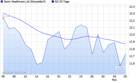 Mit dem Anstieg auf 11,94 EUR hat die Sonic Healthcare-Aktie am 04.11.2025 die 20-Tage-Linie nach oben gekreuzt.
