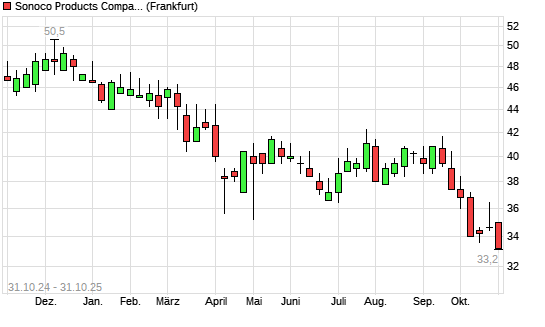 Mit dem Rücksetzer auf 33,40 EUR hat die Sonoco Products-Aktie (ISIN US8354951027) am 30.10.2025 ein neues 10-Jahres-Tief erreicht und damit den Kurs vom 27.10.2025 eingestellt.