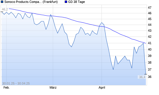 Mit dem Anstieg auf 41,00 EUR hat die Sonoco Products-Aktie am 29.04.2025 die 38-Tage-Linie nach oben gekreuzt.