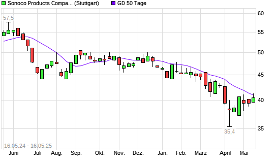 Mit dem Anstieg auf 40,80 EUR hat die Sonoco Products-Aktie am 15.05.2025 die 50-Tage-Linie nach oben gekreuzt.