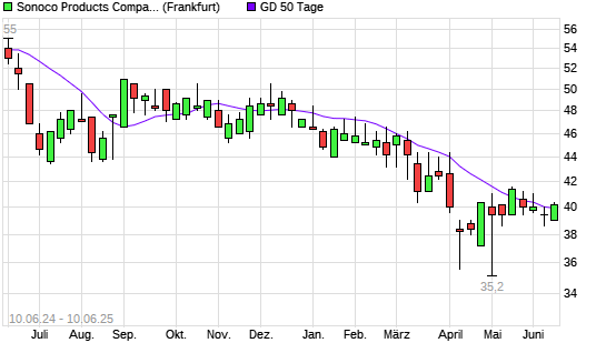 Mit dem Anstieg auf 40,00 EUR hat die Sonoco Products-Aktie am 09.06.2025 die 50-Tage-Linie nach oben gekreuzt.