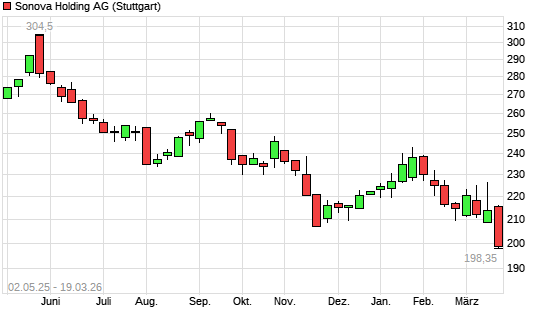Mit dem Rücksetzer auf 199,00 EUR hat die Sonova Holding-Aktie (ISIN CH0012549785) am 18.03.2026 ein neues 5-Jahres-Tief erreicht und damit den Kurs vom 17.03.2026 eingestellt.