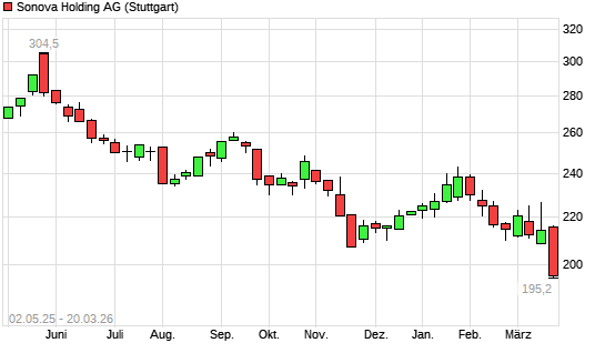 Mit dem Rücksetzer auf 198,40 EUR hat die Sonova Holding-Aktie (ISIN CH0012549785) am 19.03.2026 ein neues 5-Jahres-Tief erreicht und damit den Kurs vom 18.03.2026 eingestellt.