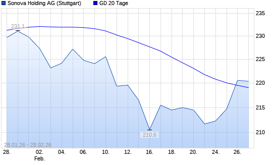 Mit dem Anstieg auf 220,90 EUR hat die Sonova Holding-Aktie am 27.02.2026 die 20-Tage-Linie nach oben gekreuzt.