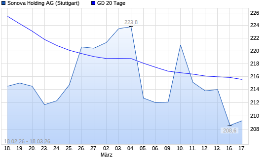 Mit dem Rücksetzer auf 207,00 EUR hat die Sonova Holding-Aktie am 17.03.2026 die 20-Tage-Linie nach unten gekreuzt.