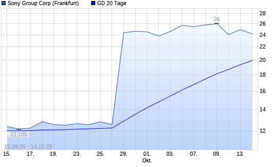 Mit dem Anstieg auf 24,93 EUR hat die Sony-Aktie am 13.10.2025 die 20-Tage-Linie nach oben gekreuzt.