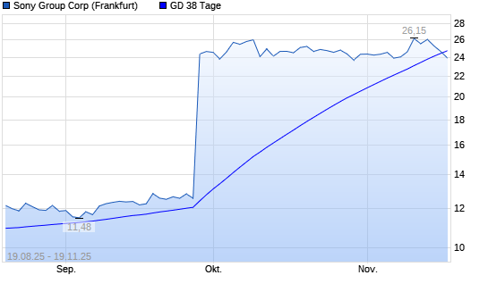 Mit dem Rücksetzer auf 24,64 EUR hat die Sony-Aktie am 18.11.2025 die 38-Tage-Linie nach unten gekreuzt.