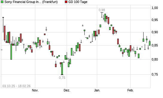 Mit dem Rücksetzer auf 0,86 EUR hat die Sony Financial Holding-Aktie am 17.02.2026 die 100-Tage-Linie nach unten gekreuzt.