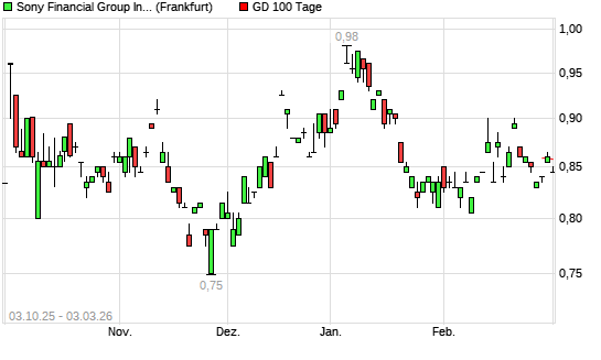 Mit dem Rücksetzer auf 0,85 EUR hat die Sony Financial Holding-Aktie am 02.03.2026 die 100-Tage-Linie nach unten gekreuzt.Der Abstand zur 200-Tage-Linie beträgt aktuell ...weiterlesen